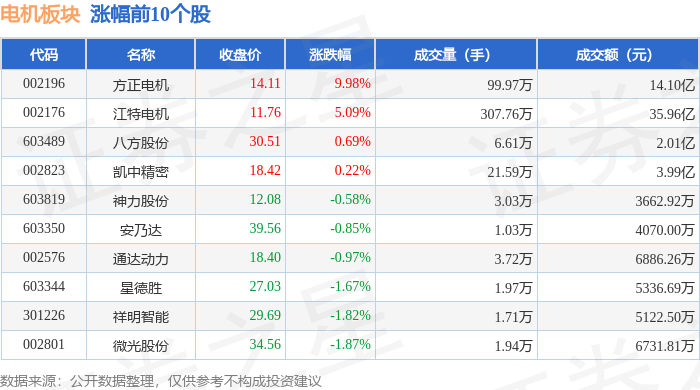 证券之星消息,11月7日电机板块较上一交易日下跌1.88%,湘电股份领跌。当日上证指数报收于3997.56,下跌0.25%。深证成指报收于13404.06,下跌0.36%。电机板块个股涨跌见下表: