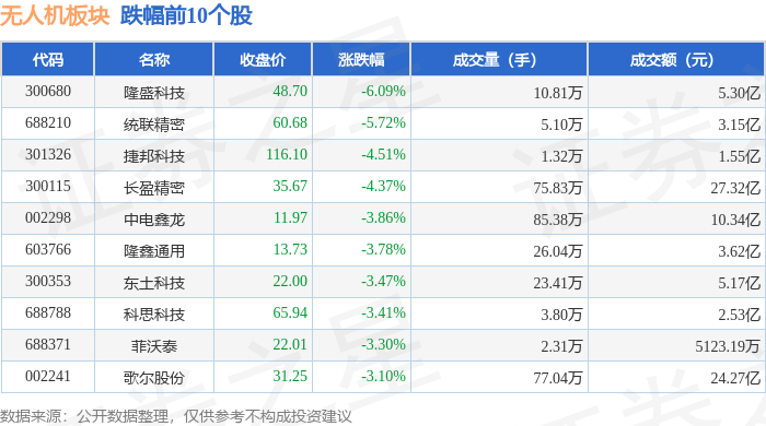 从资金流向上来看,当日无人机板块主力资金净流出22.12亿元,游资资金净流入2.07亿元,散户资金净流入20.05亿元。无人机板块个股资金流向见下表:
