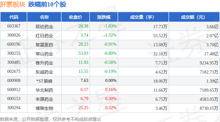 证券之星消息,11月7日肝素板块较上一交易日下跌0.21%,辰欣药业领跌。当日上证指数报收于3997.56,下跌0.25%。深证成指报收于13404.06,下跌0.36%。肝素板块个股涨跌见下表: