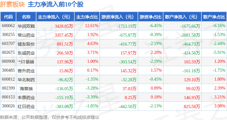 从资金流向上来看,当日肝素板块主力资金净流出2518.28万元,游资资金净流入521.99万元,散户资金净流入1996.29万元。肝素板块个股资金流向见下表:
