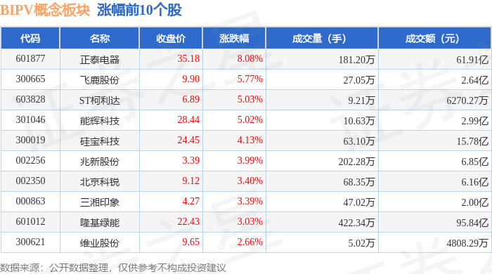 从资金流向上来看,当日BIPV概念板块主力资金净流出3.23亿元,游资资金净流入4.14亿元,散户资金净流出9046.21万元。BIPV概念板块个股资金流向见下表: