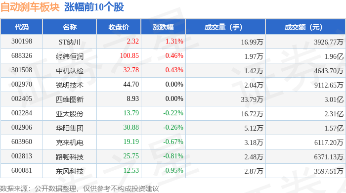 从资金流向上来看,当日自动刹车板块主力资金净流出7.76亿元,游资资金净流入3.05亿元,散户资金净流入4.71亿元。自动刹车板块个股资金流向见下表: