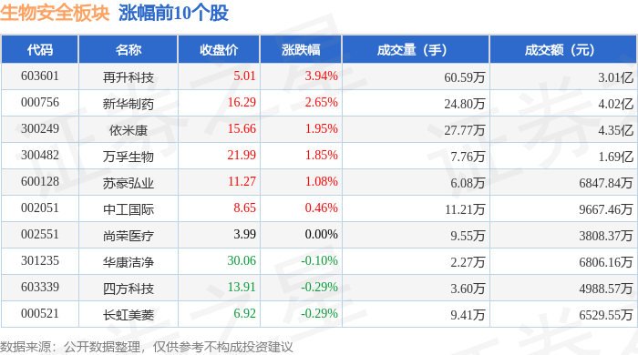 从资金流向上来看,当日生物安全板块主力资金净流出2275.82万元,游资资金净流入2903.32万元,散户资金净流出627.5万元。生物安全板块个股资金流向见下表: