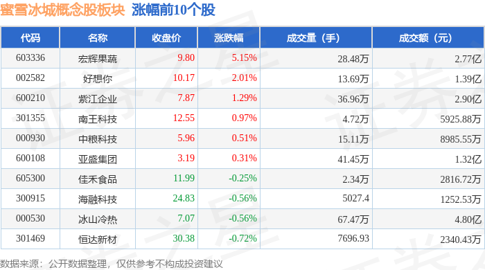 从资金流向上来看,当日蜜雪冰城概念股板块主力资金净流出7619.11万元,游资资金净流出1549.19万元,散户资金净流入9168.3万元。蜜雪冰城概念股板块个股资金流向见下表: