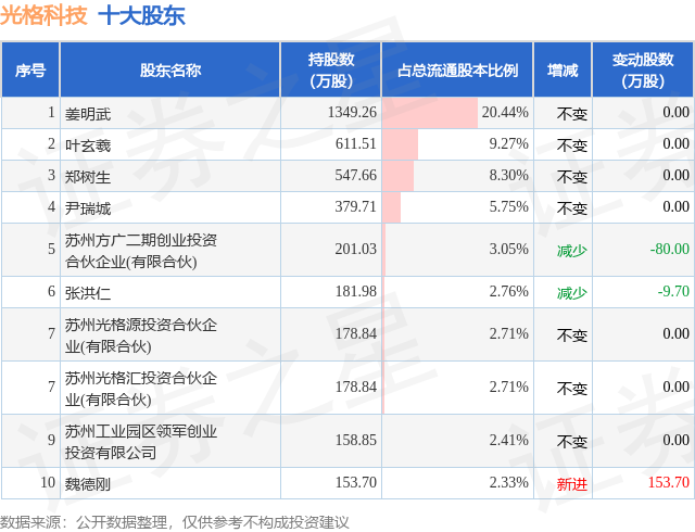 根据光格科技2025年三季报公布的十大股东详情如下: