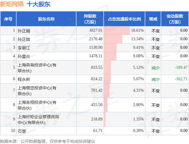 根据新炬网络2025年三季报公布的十大股东详情如下: