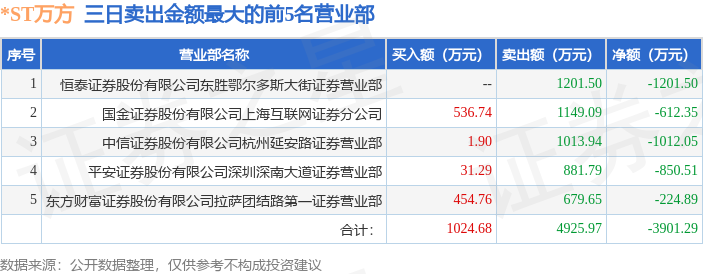 证券之星消息,沪深交易所2025年11月7日公布的交易公开信息显示,*ST万方(000638)因连续三个交易日内,跌幅偏离值累计达到12%的ST证券、*ST证券和未完成股改证券登上龙虎榜。此次是近5个交易日内第2次上榜。