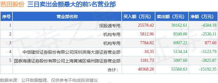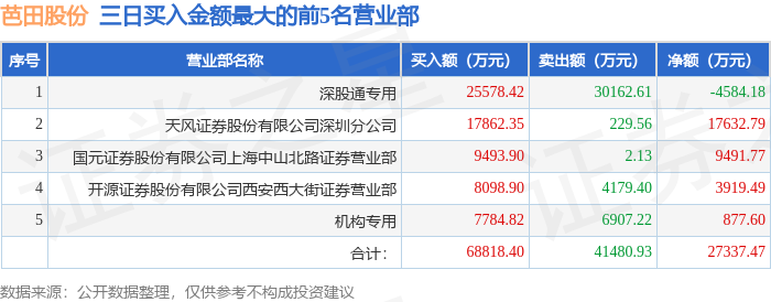 证券之星消息,沪深交易所2025年11月7日公布的交易公开信息显示,芭田股份(002170)因连续三个交易日内,涨幅偏离值累计达到20%的证券登上龙虎榜。此次是近5个交易日内第1次上榜。