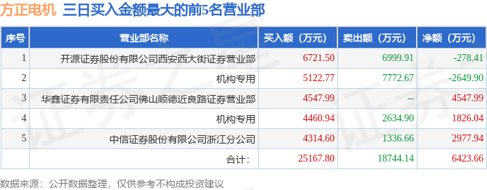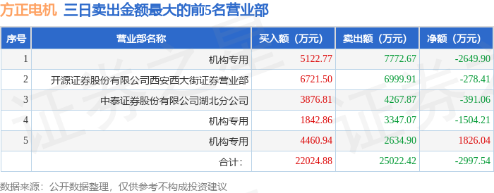 证券之星消息,沪深交易所2025年11月7日公布的交易公开信息显示,方正电机(002196)因连续三个交易日内,涨幅偏离值累计达到20%的证券登上龙虎榜。此次是近5个交易日内第1次上榜。