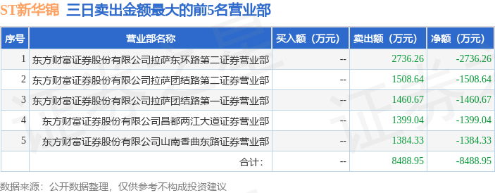 证券之星消息,沪深交易所2025年11月7日公布的交易公开信息显示,ST新华锦(600735)因ST、*ST证券连续三个交易日内收盘价格跌幅偏离值累计达到12%的证券登上龙虎榜。此次是近5个交易日内第1次上榜。