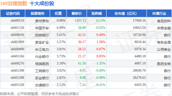 证券之星消息,11月7日,180治理(000021)指数报收于1076.6点,涨0.14%,成交998.42亿元,换手率0.32%。当日该指数成份股中,上涨的有51家,万华化学以5.79%的涨幅领涨,下跌的有45家,生益科技以2.87%的跌幅领跌。