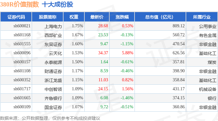 380R价值(000120)指数十大成份股详情如下: