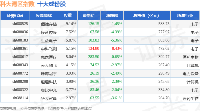 科大湾区(000697)指数十大成份股详情如下: