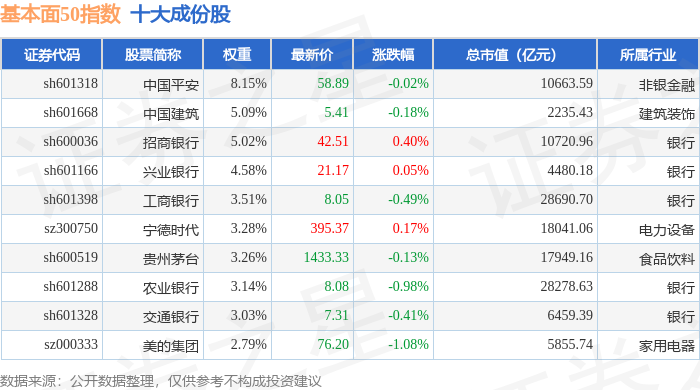 基本面50(000925)指数十大成份股详情如下: