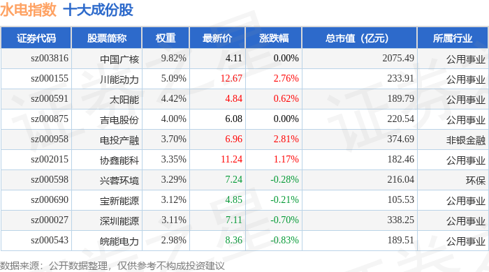 资金流向方面,水电指数(399234)成份股当日主力资金净流出合计4.03亿元,游资资金净流入合计1652.7万元,散户资金净流入合计3.87亿元。成份股资金流向详情见下表:
