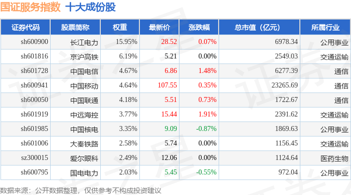 国证服务(399320)指数十大成份股详情如下: