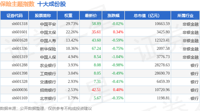 证券之星消息,11月7日,保险主题(399809)指数报收于2436.37点,跌0.23%,成交185.09亿元,换手率0.17%。当日该指数成份股中,上涨的有2家,招商银行以0.4%的涨幅领涨,下跌的有14家,浙江东方以3.57%的跌幅领跌。