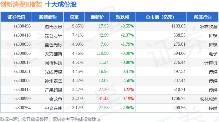 资金流向方面,创新消费R(470041)指数成份股当日主力资金净流出合计18.73亿元,游资资金净流入合计6.36亿元,散户资金净流入合计12.36亿元。成份股资金流向详情见下表: