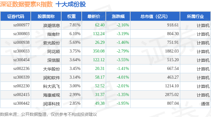 深证数据要素R(470053)指数十大成份股详情如下: