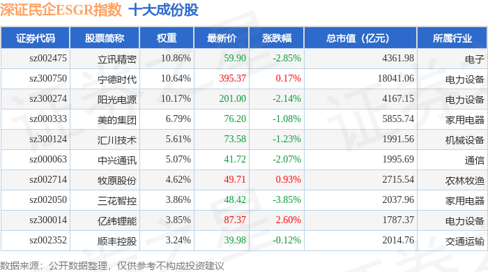 深证民企ESGR(470056)指数十大成份股详情如下: