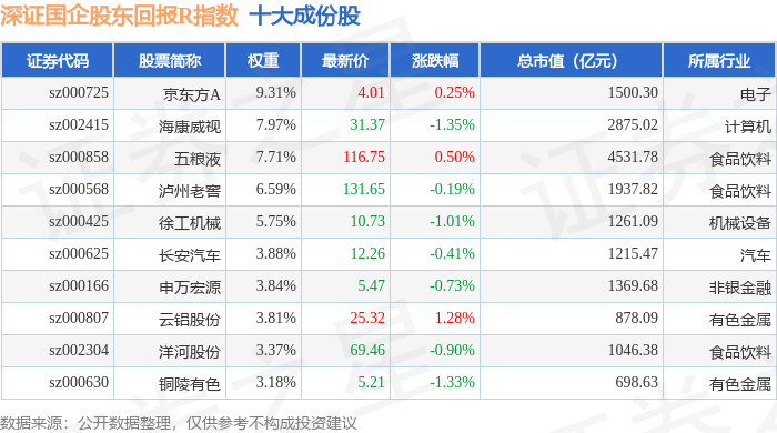 深证国企股东回报R(470064)指数十大成份股详情如下: