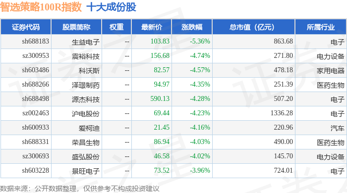 资金流向方面,智选策略100R(489015)指数成份股当日主力资金净流出合计53.43亿元,游资资金净流入合计27.68亿元,散户资金净流入合计25.75亿元。成份股资金流向详情见下表: