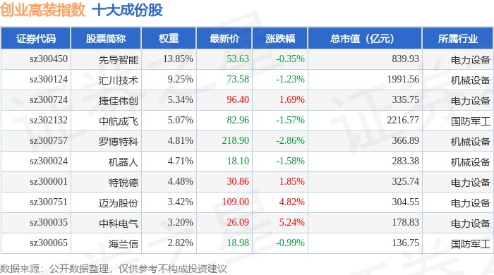 证券之星消息,11月7日,创业高装(970040)指数报收于4098.62点,跌0.28%,成交292.52亿元,换手率4.79%。当日该指数成份股中,上涨的有14家,万胜智能以7.08%的涨幅领涨,下跌的有35家,凯格精机以4.4%的跌幅领跌。