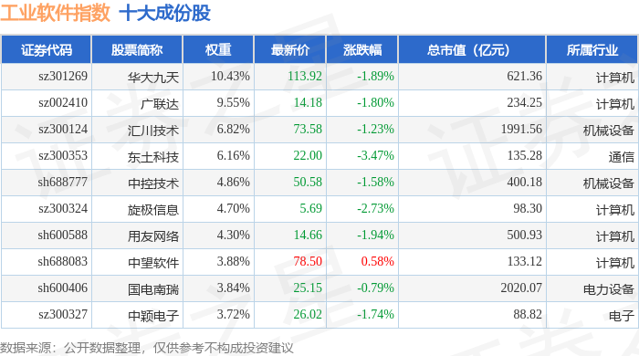 工业软件(980034)指数十大成份股详情如下: