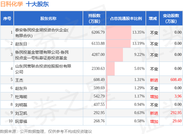 根据日科化学2025年三季报公布的十大股东详情如下: