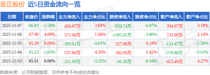 证券之星消息,截至2025年11月7日收盘,至正股份(603991)报收于66.83元,下跌1.58%,换手率2.46%,成交量1.84万手,成交额1.24亿元。