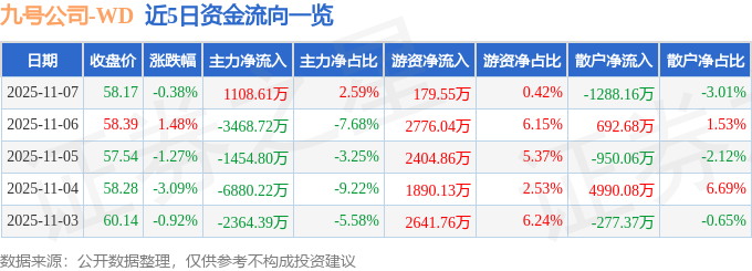 11月7日的资金流向数据方面,主力资金净流入1108.61万元,占总成交额2.59%,游资资金净流入179.55万元,占总成交额0.42%,散户资金净流出1288.16万元,占总成交额3.01%。