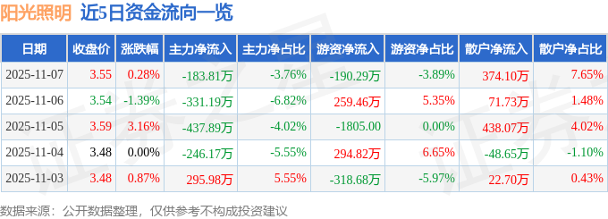 证券之星消息,截至2025年11月7日收盘,阳光照明(600261)报收于3.55元,上涨0.28%,换手率1.03%,成交量13.75万手,成交额4888.63万元。