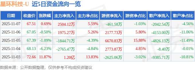 证券之星消息,截至2025年11月7日收盘,星环科技(688031)报收于67.51元,上涨0.69%,换手率7.0%,成交量6.58万手,成交额4.48亿元。