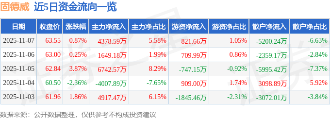 证券之星消息,截至2025年11月7日收盘,固德威(688390)报收于63.55元,上涨0.87%,换手率5.08%,成交量12.35万手,成交额7.85亿元。