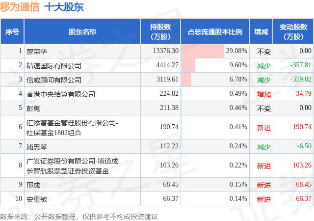 根据移为通信2025年三季报公布的十大股东详情如下: