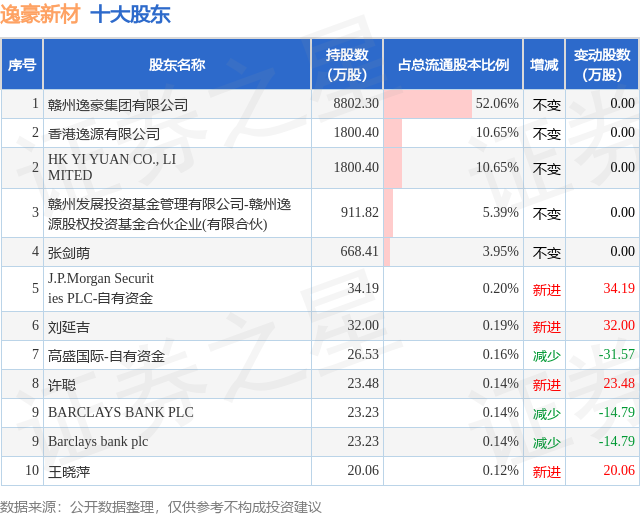 根据逸豪新材2025年三季报公布的十大股东详情如下: