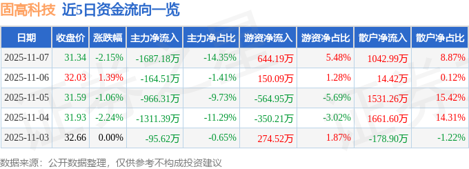 证券之星消息,截至2025年11月7日收盘,固高科技(301510)报收于31.34元,下跌2.15%,换手率1.34%,成交量3.73万手,成交额1.18亿元。