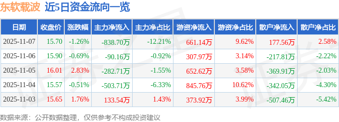 11月7日的资金流向数据方面,主力资金净流出838.7万元,占总成交额12.21%,游资资金净流入661.14万元,占总成交额9.62%,散户资金净流入177.56万元,占总成交额2.58%。