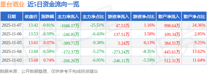 证券之星消息,截至2025年11月7日收盘,皇台酒业(000995)报收于13.42元,下跌0.81%,换手率1.71%,成交量3.04万手,成交额4100.34万元。