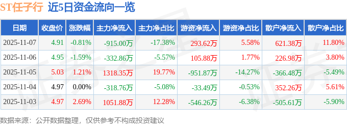 证券之星消息,截至2025年11月7日收盘,ST任子行(300311)报收于4.91元,下跌0.81%,换手率1.99%,成交量10.71万手,成交额5265.52万元。