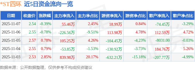 证券之星消息,截至2025年11月7日收盘,*ST四环(000518)报收于2.54元,下跌0.39%,换手率0.86%,成交量8.84万手,成交额2259.58万元。