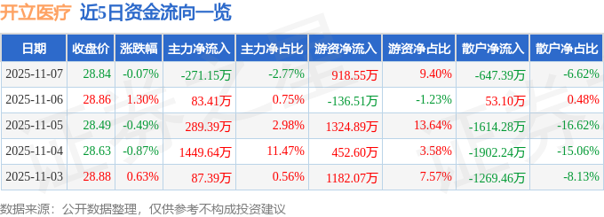 证券之星消息,截至2025年11月7日收盘,开立医疗(300633)报收于28.84元,下跌0.07%,换手率0.78%,成交量3.4万手,成交额9772.96万元。