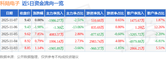 证券之星消息,截至2025年11月7日收盘,科陆电子(002121)报收于9.43元,上涨0.0%,换手率5.94%,成交量83.15万手,成交额7.9亿元。