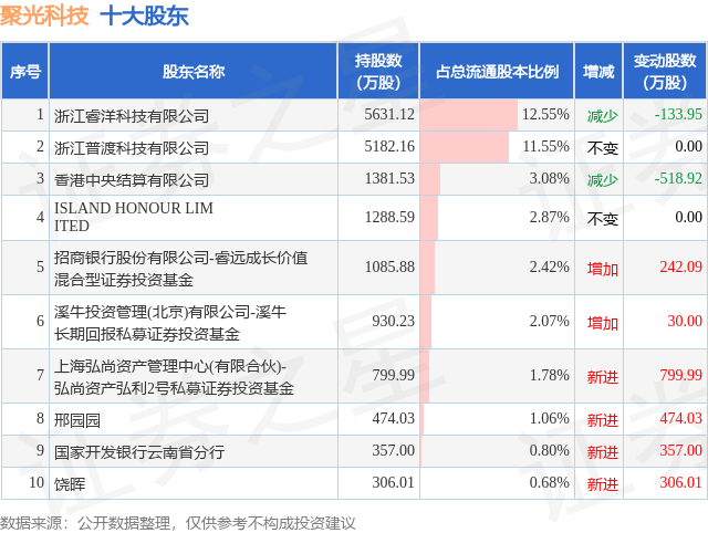 根据聚光科技2025年三季报公布的十大股东详情如下: