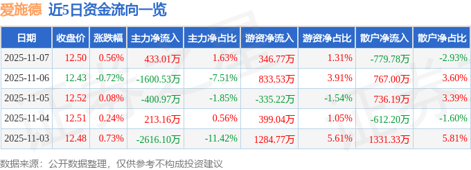 证券之星消息,截至2025年11月7日收盘,爱施德(002416)报收于12.5元,上涨0.56%,换手率1.73%,成交量21.18万手,成交额2.66亿元。