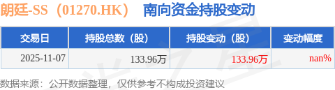 证券之星消息,11月7日南向资金增持133.96万股朗廷-SS(01270.HK)。截至目前,南向资金持有朗廷-SS(01270.HK)133.96万股,占公司已发行普通股的0.03%。