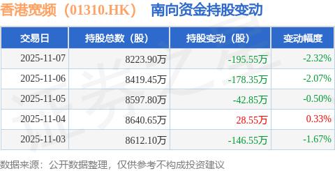 证券之星消息,11月7日南向资金减持195.55万股香港宽频(01310.HK)。近5个交易日中,获南向资金减持的有4天,累计净减持534.75万股。近20个交易日中,获南向资金减持的有16天,累计净减持2320.65万股。截至目前,南向资金持有香港宽频(01310.HK)8223.9万股,占公司已发行普通股的5.56%。