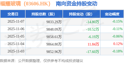 证券之星消息,11月7日南向资金减持14.8万股福耀玻璃(03606.HK)。近5个交易日中,获南向资金减持的有4天,累计净减持37.27万股。近20个交易日中,获南向资金增持的有7天,累计净增持51.71万股。截至目前,南向资金持有福耀玻璃(03606.HK)9833.29万股,占公司已发行普通股的16.2%。