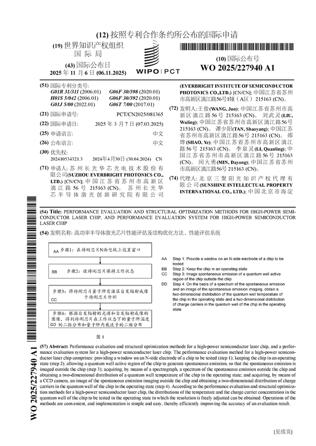 证券之星消息,根据企查查数据显示长光华芯(688048)公布了一项国际专利申请,专利名为“高功率半导体激光芯片性能评估及结构优化方法、性能评估系统”,专利申请号为PCT/CN2025/081365,国际公布日为2025年11月6日。