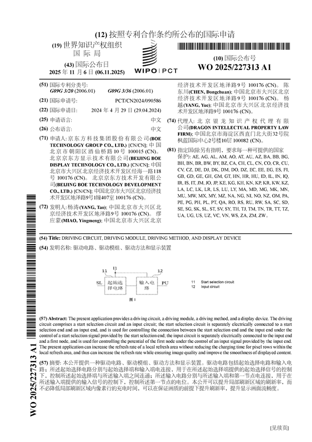 证券之星消息,根据企查查数据显示京东方A(000725)公布了一项国际专利申请,专利名为“驱动电路、驱动模组、驱动方法和显示装置”,专利申请号为PCT/CN2024/090586,国际公布日为2025年11月6日。